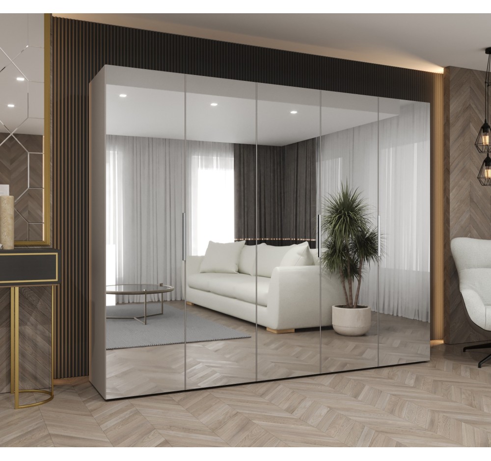 Hoher Drehtürenschrank mit Spiegel Kleiderschrank MARBELLA 3 - Größe 100cm, 150cm, 200cm, 250cm, 300cm