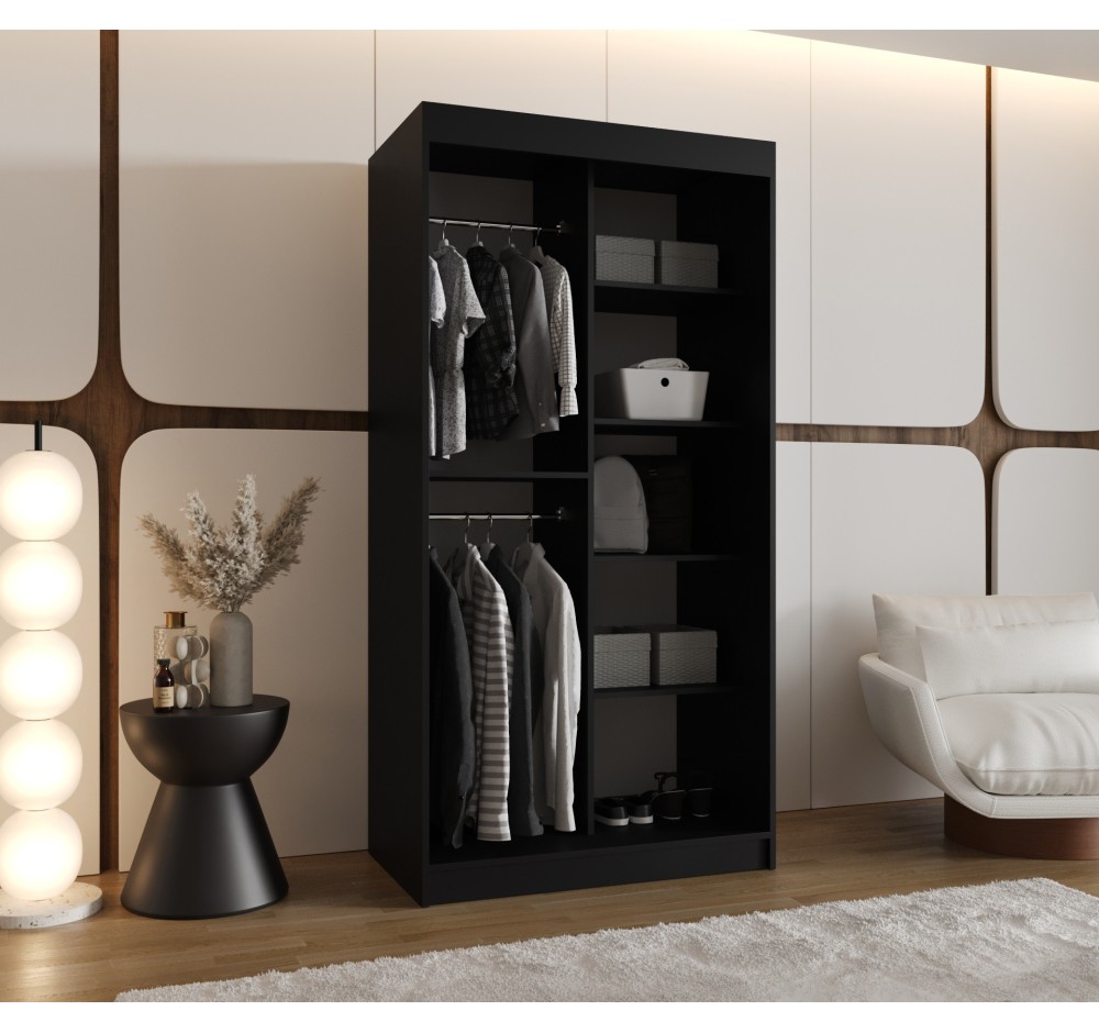 Suchen Sie ein Möbelstück, das Ihre gesamte Garderobe aufnimmt und gleichzeitig Ihr Schlafzimmer optisch vergrößert? Unser Schiebetürenschrank ist die perfekte Kombination aus modernem Design und zuverlässiger Funktionalität. Dank der breiten Farbpalette und kompakten Maße fügt er sich ideal in jedes Interieur ein!