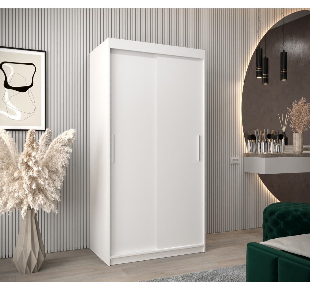Suchen Sie ein Möbelstück, das Ihre gesamte Garderobe aufnimmt und gleichzeitig Ihr Schlafzimmer optisch vergrößert? Unser Schiebetürenschrank ist die perfekte Kombination aus modernem Design und zuverlässiger Funktionalität. Dank der breiten Farbpalette und kompakten Maße fügt er sich ideal in jedes Interieur ein!