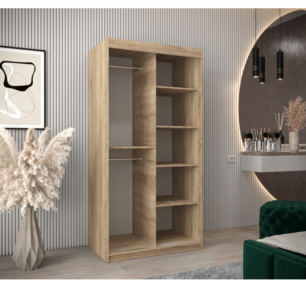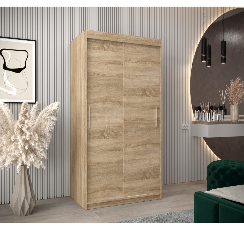 Suchen Sie ein Möbelstück, das Ihre gesamte Garderobe aufnimmt und gleichzeitig Ihr Schlafzimmer optisch vergrößert? Unser Schiebetürenschrank ist die perfekte Kombination aus modernem Design und zuverlässiger Funktionalität. Dank der breiten Farbpalette und kompakten Maße fügt er sich ideal in jedes Interieur ein!