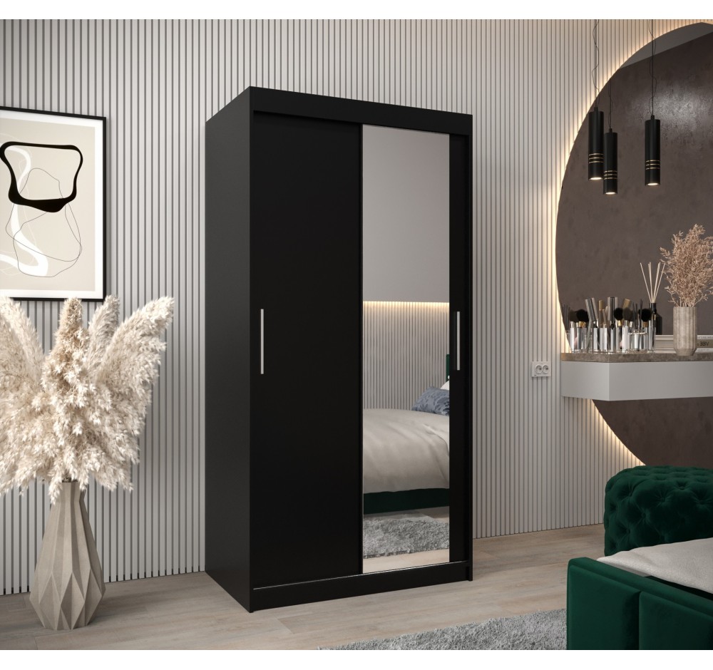 Suchen Sie ein Möbelstück, das Ihre gesamte Garderobe aufnimmt und gleichzeitig Ihr Schlafzimmer optisch vergrößert? Unser Schiebetürenschrank ist die perfekte Kombination aus modernem Design und zuverlässiger Funktionalität. Dank der breiten Farbpalette und kompakten Maße fügt er sich ideal in jedes Interieur ein!