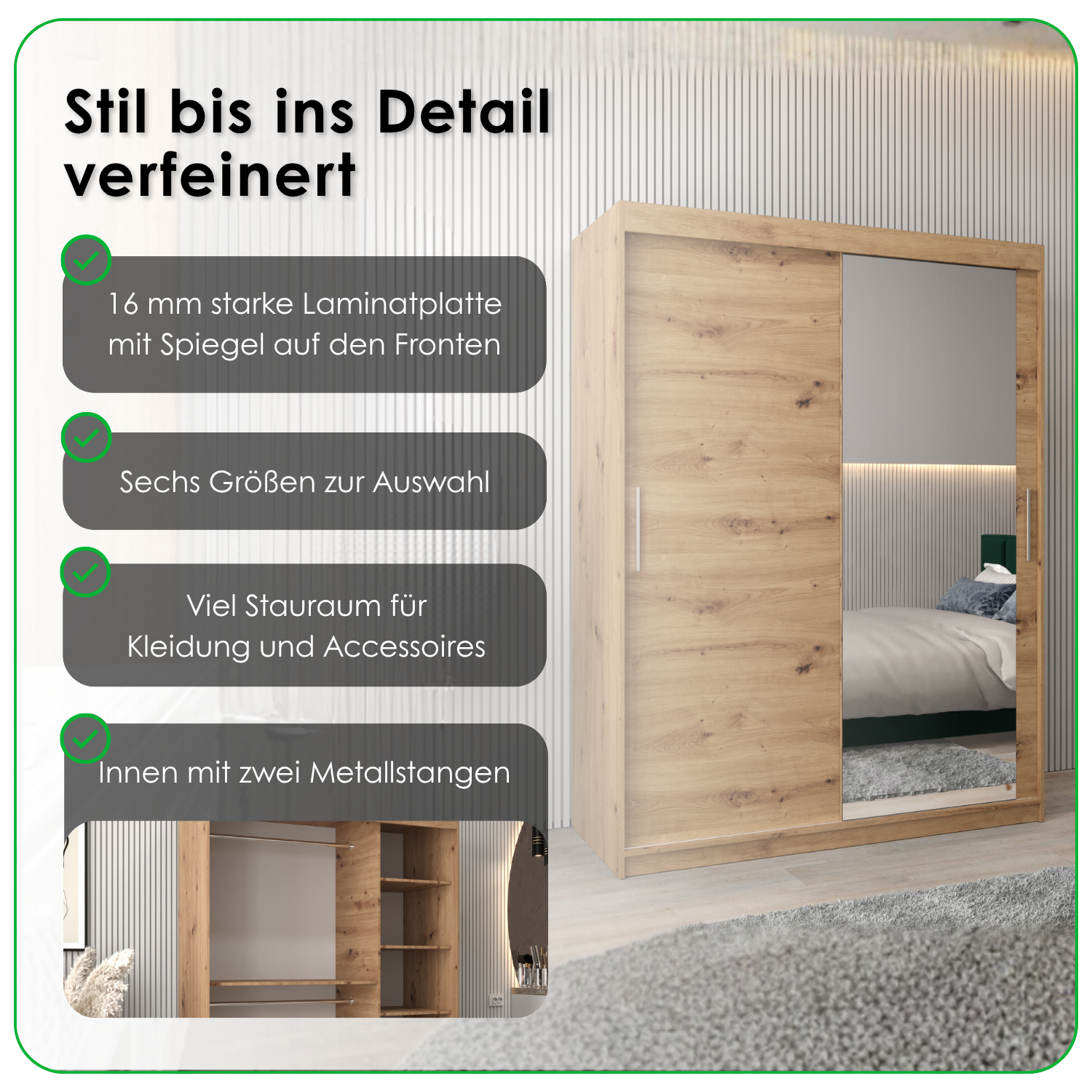 Schiebetürenschrank mit Spiegel Tokyo 2, Tiefe 62 cm, Höhe 200 cm