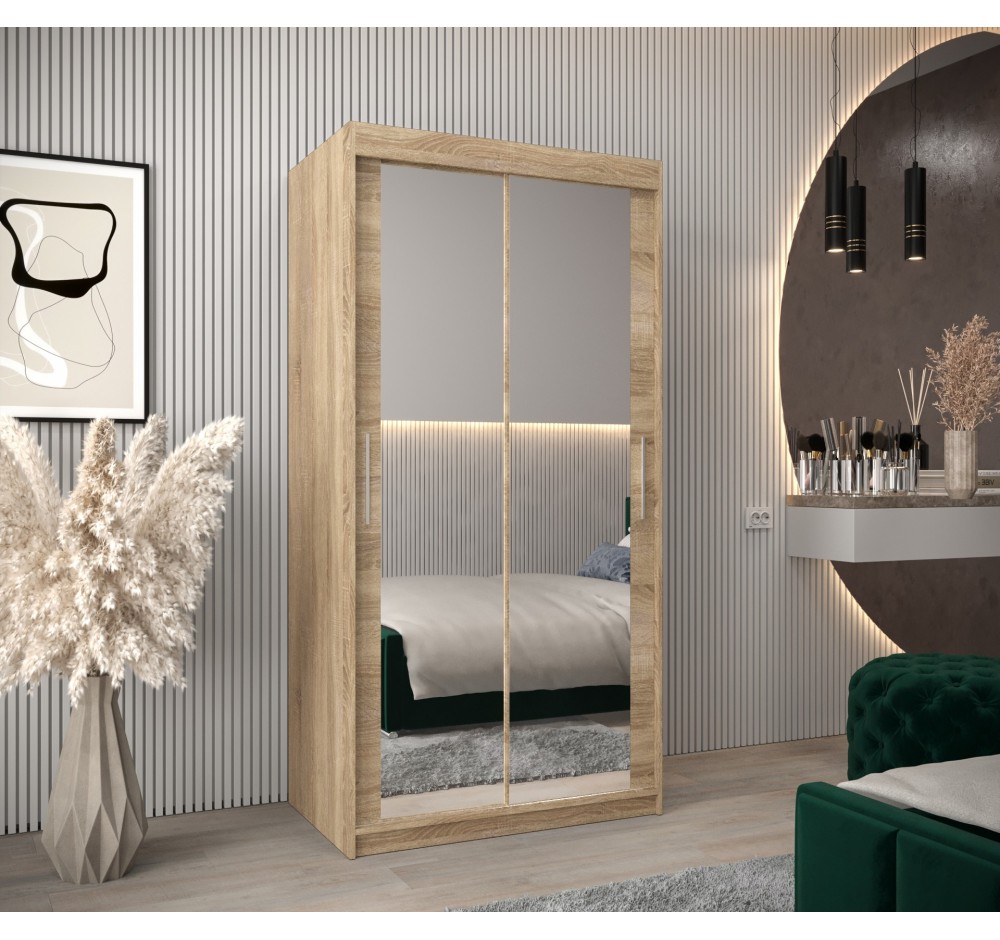 Schiebetürenschrank mit Spiegel Tokyo 3, Tiefe 62 cm, Höhe 200 cm