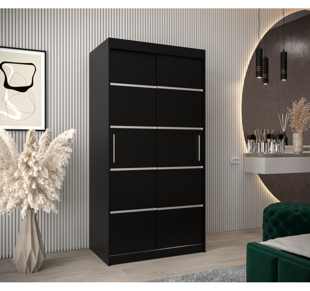 Suchen Sie ein Möbelstück, das Ihre gesamte Garderobe aufnimmt und gleichzeitig Ihr Schlafzimmer optisch vergrößert? Unser Schiebetürenschrank ist die perfekte Kombination aus modernem Design und zuverlässiger Funktionalität. Dank der breiten Farbpalette und kompakten Maße fügt er sich ideal in jedes Interieur ein!