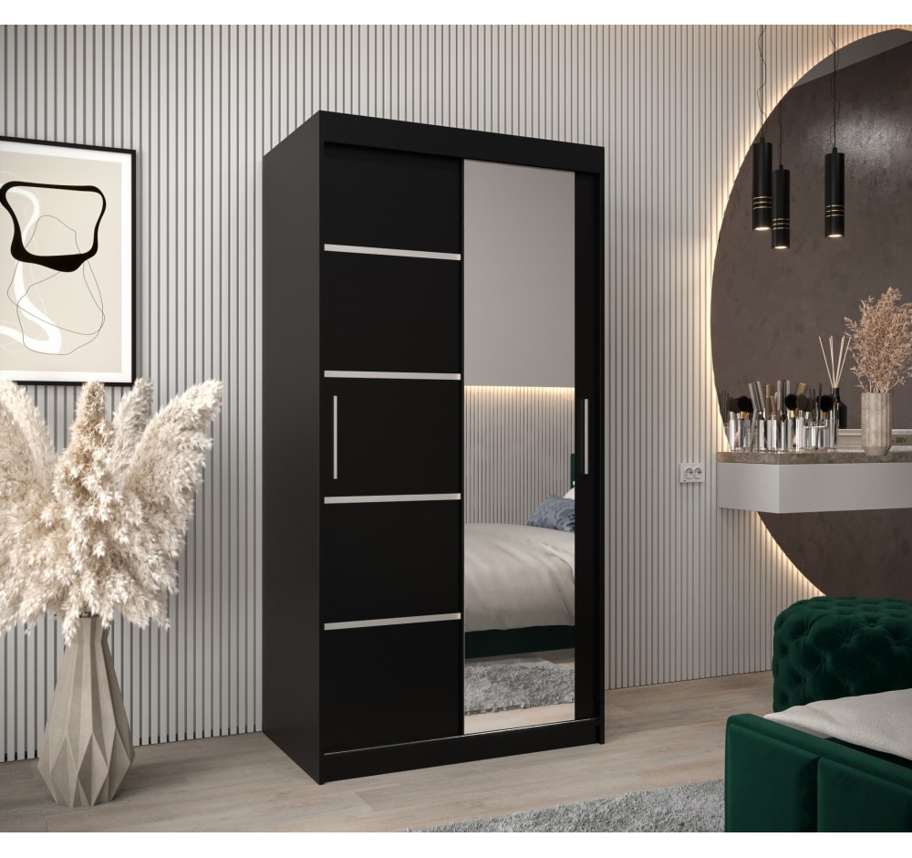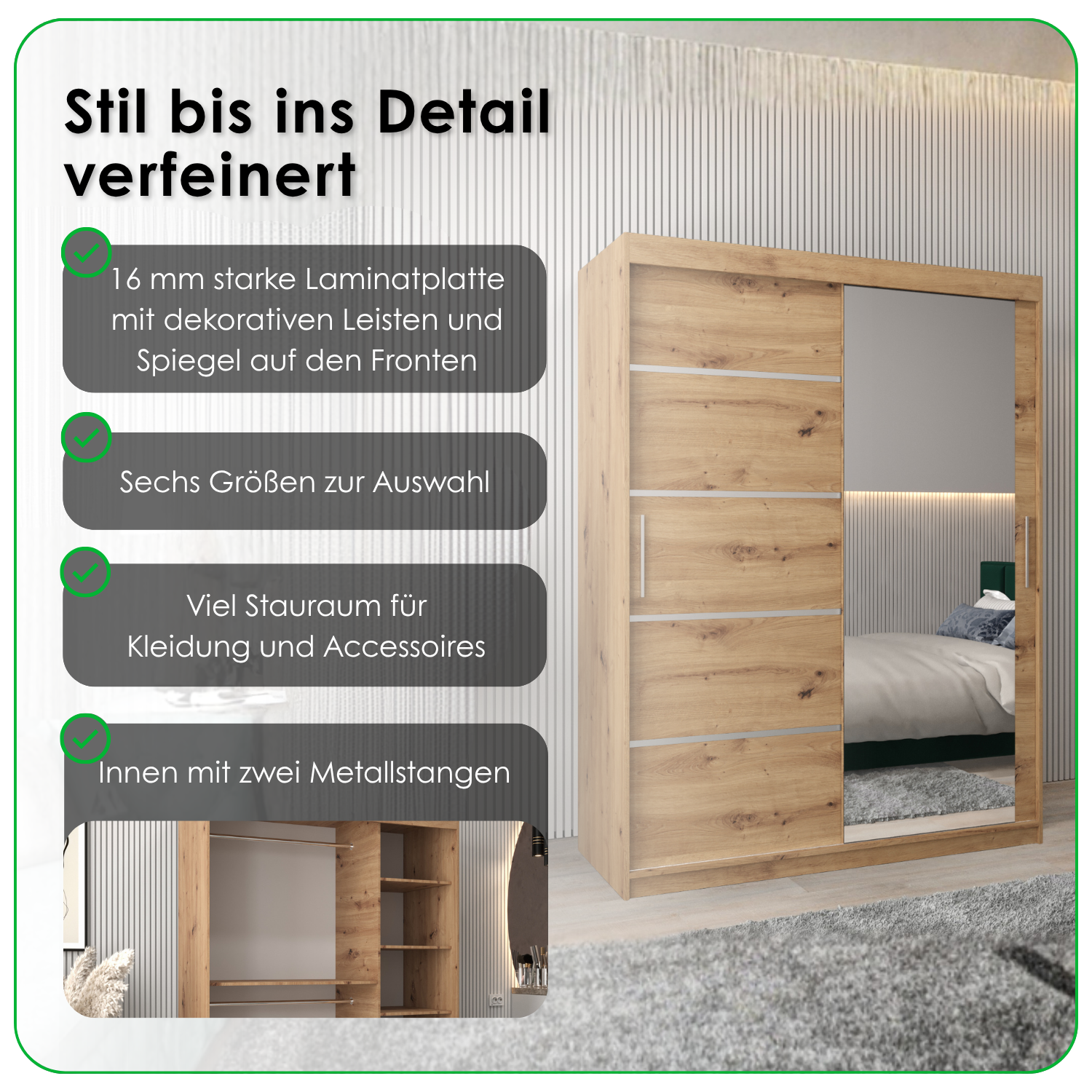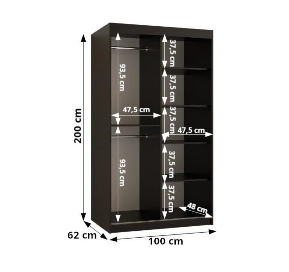 Suchen Sie ein Möbelstück, das Ihre gesamte Garderobe aufnimmt und gleichzeitig Ihr Schlafzimmer optisch vergrößert? Unser Schiebetürenschrank ist die perfekte Kombination aus modernem Design und zuverlässiger Funktionalität. Dank der breiten Farbpalette und kompakten Maße fügt er sich ideal in jedes Interieur ein!