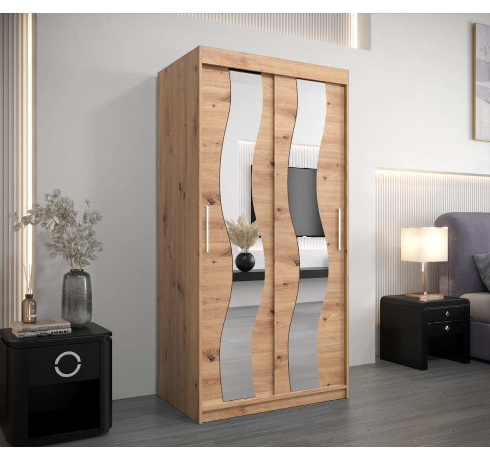Haben Sie Probleme, Ihre Garderobe platzsparend unterzubringen? Wir haben die Lösung! Unser Schiebetürenschrank bietet maximalen Stauraum auf kompakter Fläche. Das moderne Design und die hochwertige Spiegeloptik machen ihn zur idealen Wahl für jedes Schlafzimmer oder Flur – unabhängig von der Raumgröße