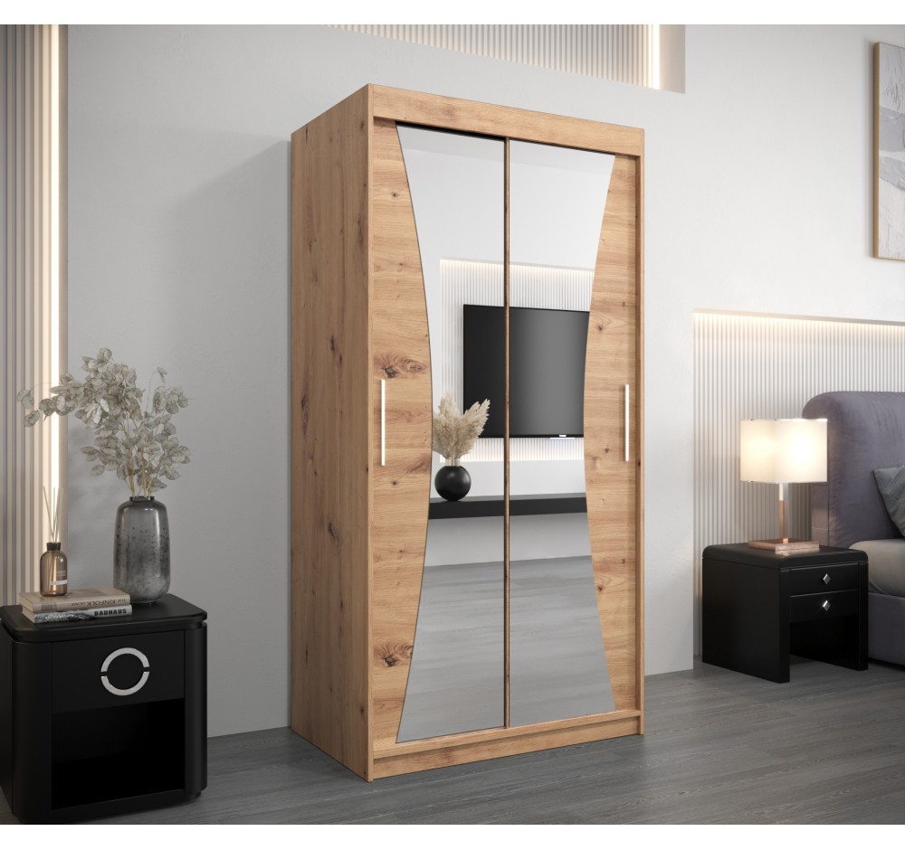 Haben Sie Probleme, Ihre Garderobe platzsparend unterzubringen? Wir haben die Lösung! Unser Schiebetürenschrank bietet maximalen Stauraum auf kompakter Fläche. Das moderne Design und die hochwertige Spiegeloptik machen ihn zur idealen Wahl für jedes Schlafzimmer oder Flur – unabhängig von der Raumgröße