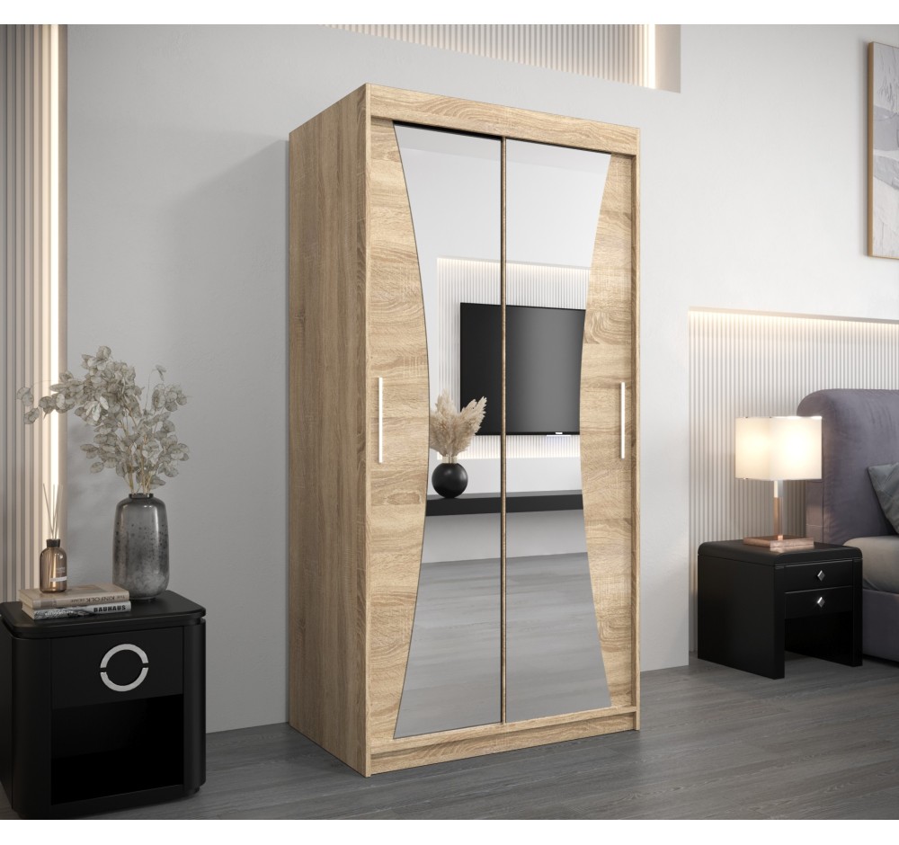 Schiebetürenschrank mit Spiegel MONACO - Größe 100cm 120cm 150cm 180cm 200cm 250cm