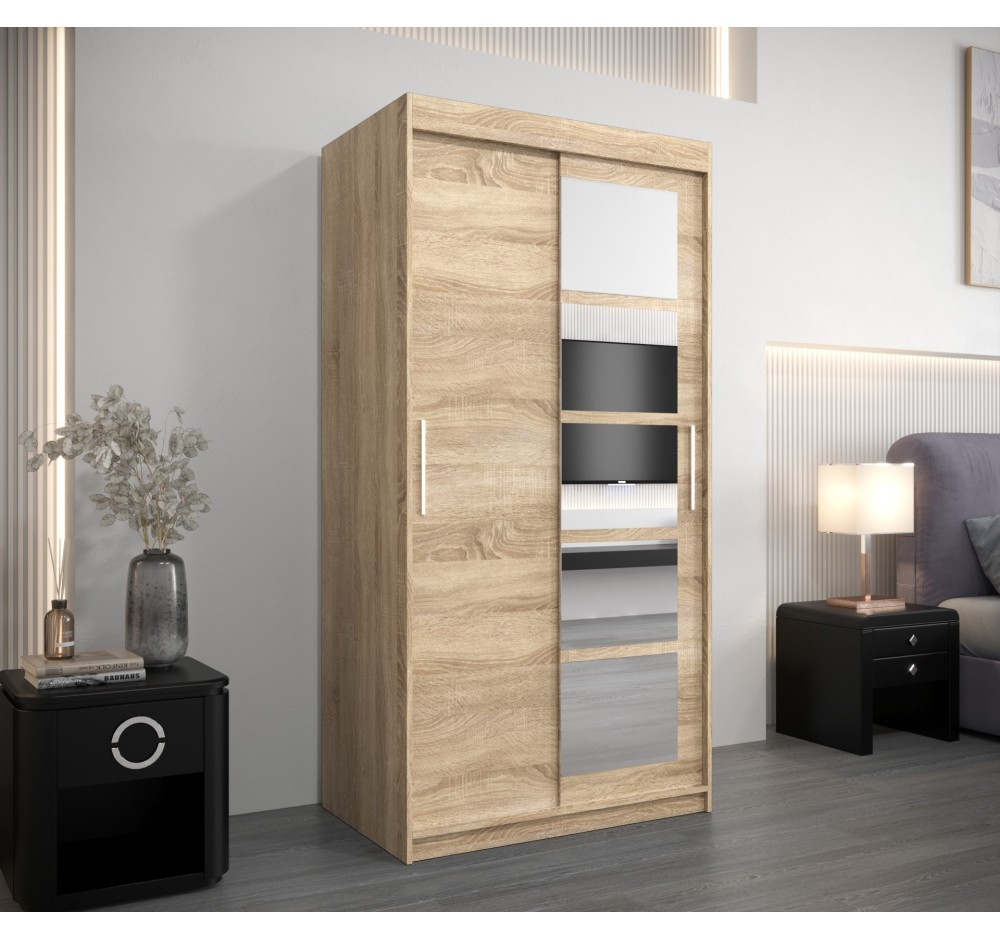 Schiebetürenschrank mit Spiegel ROMA 1 - Größe 100cm 120cm 150cm 180cm 200cm 250cm